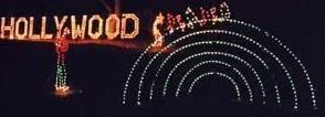 Even the Hollywood Bowl, the very symbol of summer evenings in Los Angeles, finds itself depicted in this Christmas-y display, flanked by a scaled-down Hollywood sign.