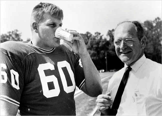Chip Hinton trying J. Robert Cade's invention in 1965. Photo courtesy University of Florida, via Agence France-Presse — Getty Images.