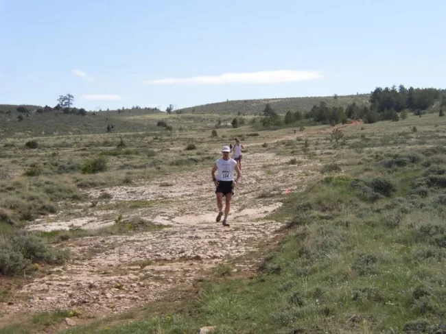 The race starts on pavement - but once you're over the first hill, it's trails all the way. The course winds around some hilly grassland before twisting up and over limestone outcroppings and through a small canyon. The water stops are casual and friendly - a pickup truck or two with a jug for water and another for Gatorade.
