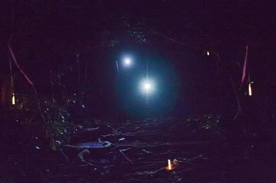 Is this me and Sue? Some other runner and his or her pacer? It doesn't really matter; this is what we all looked like on loop 3, negotiating the rugged, muddy, rooty trails in the dark. Photo by Robert P. Smith.